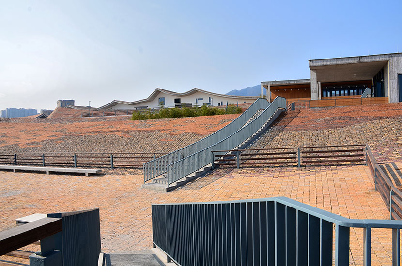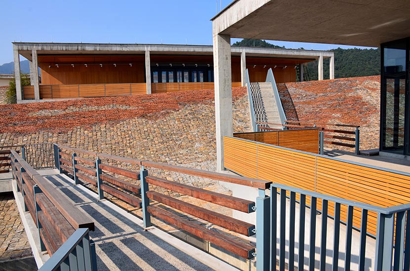 富陽(yáng)公望美術(shù)館也叫“富春山館”,位于杭州市富陽(yáng)區(qū),是集博物館、美術(shù)館、檔案館“三館合一”的建筑綜合體,由設(shè)計(jì)大師王澍設(shè)計(jì)。大師以蘇東坡《題西林壁》里的描繪為靈感來(lái)源,按照中國(guó)傳統(tǒng)的山水序列,建筑整體構(gòu)筑中呈現(xiàn)近山、遠(yuǎn)山瀠洄呼應(yīng)的構(gòu)筑法則和“三遠(yuǎn)”視角,與咫尺之遙的富春山水互相輝映。美術(shù)館設(shè)計(jì)成內(nèi)山和外山,站在屋頂會(huì)看到一整片美術(shù)館都是外山,而頂上兩件小居,正是設(shè)計(jì)師心中的富春山居。