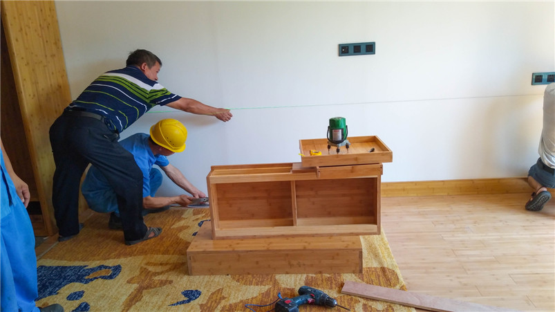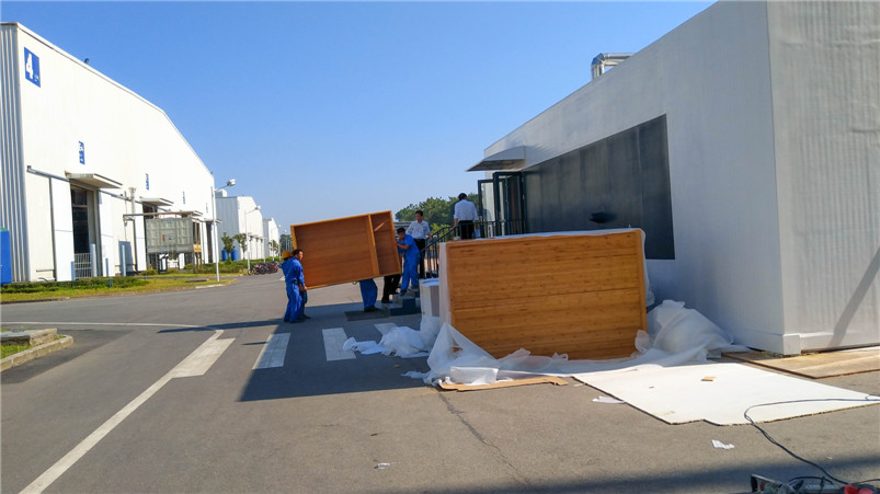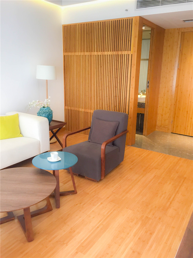 遠大可建是遠大科技集團全資子公司,是全球持續(xù)建筑的先驅(qū),創(chuàng)造360小時建成30層精裝酒店的奇跡,目前在可持續(xù)酒店產(chǎn)品進行深度研發(fā)。基于對竹材的喜愛和對竹材環(huán)保的高度認可,遠大總裁張躍親自參與此次與桃花江竹材科技在其塔式酒店產(chǎn)品竹整裝項目的洽談。在遠大可建汨羅工廠,酒店竹整裝三套樣板間安裝施工已基本完成,內(nèi)部裝飾全部在桃花江竹材科技工廠加工后運至在現(xiàn)場組裝,地面鋪設竹地板,整體效果簡潔、自然、溫馨。遠大總裁張躍視察樣板間后對竹材裝飾效果十分滿意,表示將加大對可建酒店竹整裝項目的研發(fā)與推廣,加強與桃花江竹材科技的深度合作,期望未來全世界每三幢新建建筑就有一幢是可建。