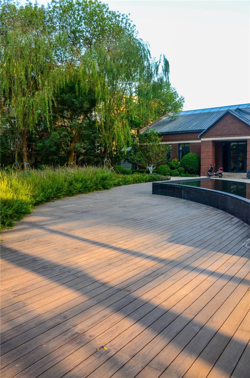天房六合國(guó)際是由天津本土的房地產(chǎn)商天房集團(tuán)建設(shè)的,天房六合國(guó)際位于天津河西區(qū)新八大里的六里地塊。桃花江竹材科技的戶外高炭防腐竹地板在該項(xiàng)目的沿街道路,園林景觀中大量運(yùn)用,在陽(yáng)光照耀下,地板與紅磚墻相互輝映,四周綠植鮮花環(huán)繞,樹(shù)木鑲嵌其中,頗有一股歐式小鎮(zhèn)的韻味。