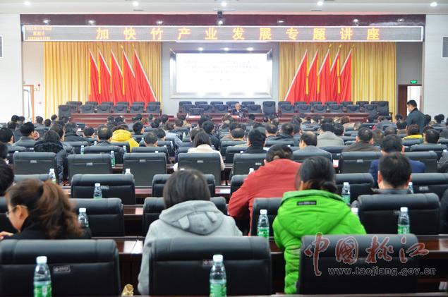 12月9日,黨政大樓附屬樓三樓會(huì)議室里,一場(chǎng)高規(guī)格的加快竹產(chǎn)業(yè)發(fā)展專題講座在這里舉行??h委副書記何軍田主持,縣領(lǐng)導(dǎo)唐學(xué)文、李質(zhì)彬、馬文才、陳震宇、胡國(guó)清、肖立新、張亮榮、劉武出席。副處級(jí)以上干部,縣直單位、鄉(xiāng)鎮(zhèn)負(fù)責(zé)人,林業(yè)系統(tǒng)工作者共400余人濟(jì)濟(jì)一堂,認(rèn)真聆聽(tīng)了中國(guó)工程院院士、中國(guó)竹子加工利用首席科學(xué)家、南京林業(yè)大學(xué)教授張齊生和國(guó)家林業(yè)局竹子研發(fā)中心科研處處長(zhǎng)、竹筍專家、高級(jí)工程師吳良如精彩而豐富的竹產(chǎn)業(yè)講課。
